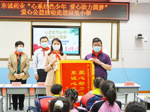 2022年5月17日,东诚药业“心系红色少年 爱心助力圆梦”捐资助学活动走进福山区回里小学,为55名家庭贫困的小学生和幼儿园学生,捐赠助学金和学习套装。 |