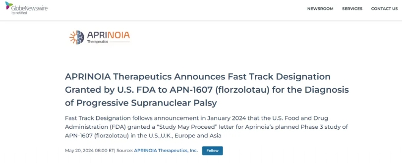 重磅 | APN-1607获得美国FDA快速通道资...